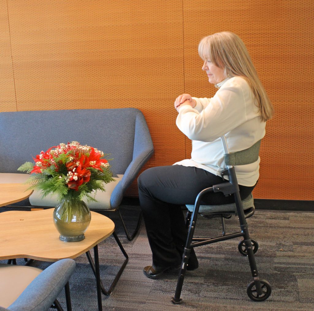 Portable folding travel walker with 5” wheels, provides light-weight, simplicity and functionality. Padded seat, backrest, cane holder and cup holder are included.